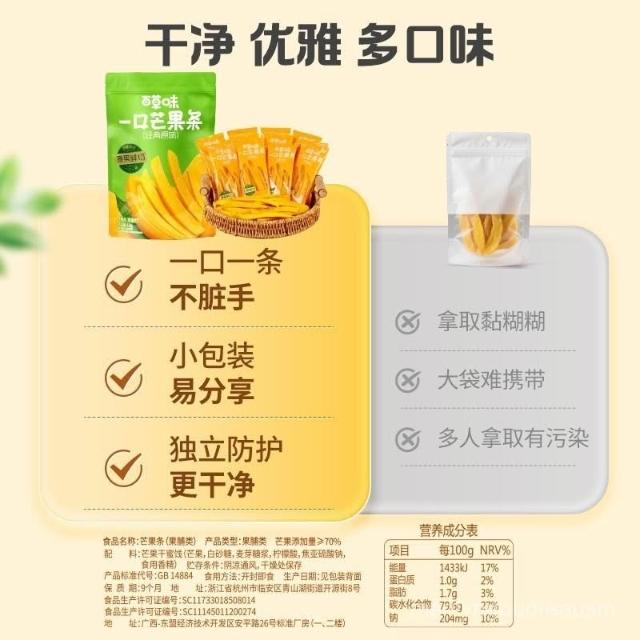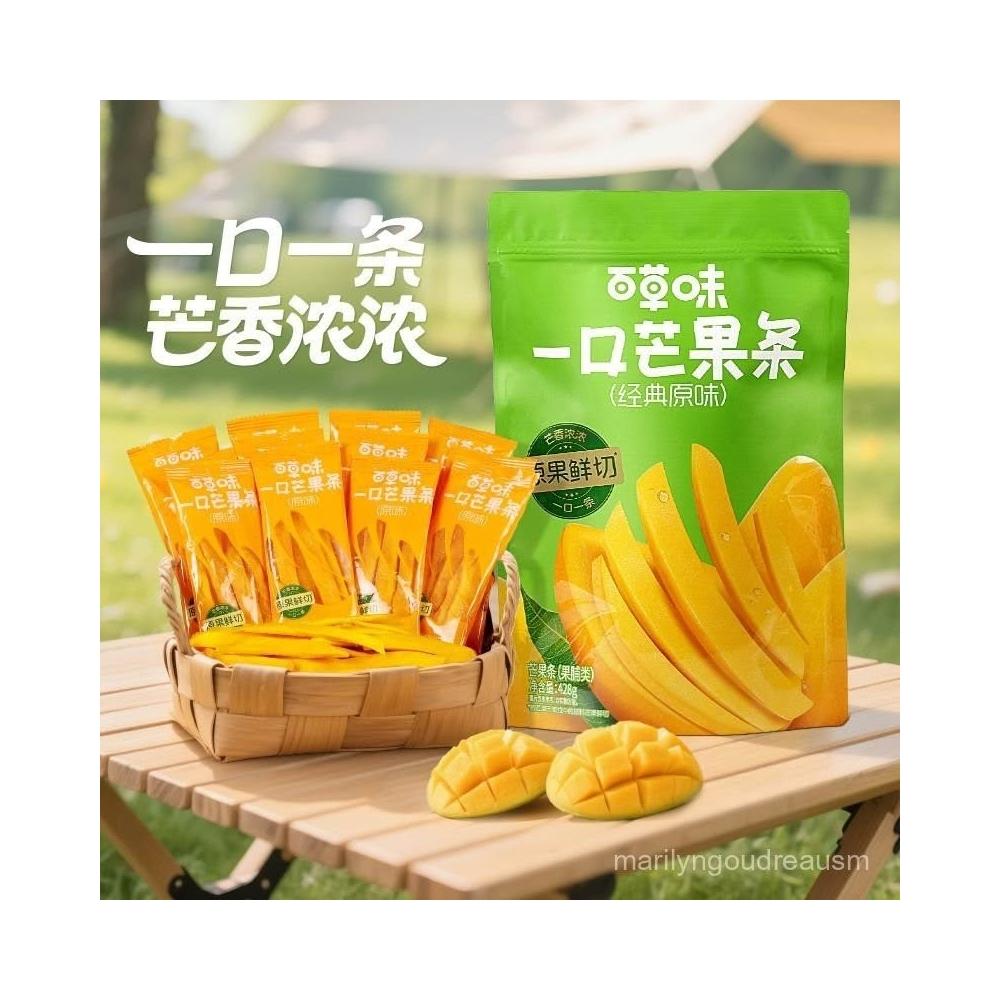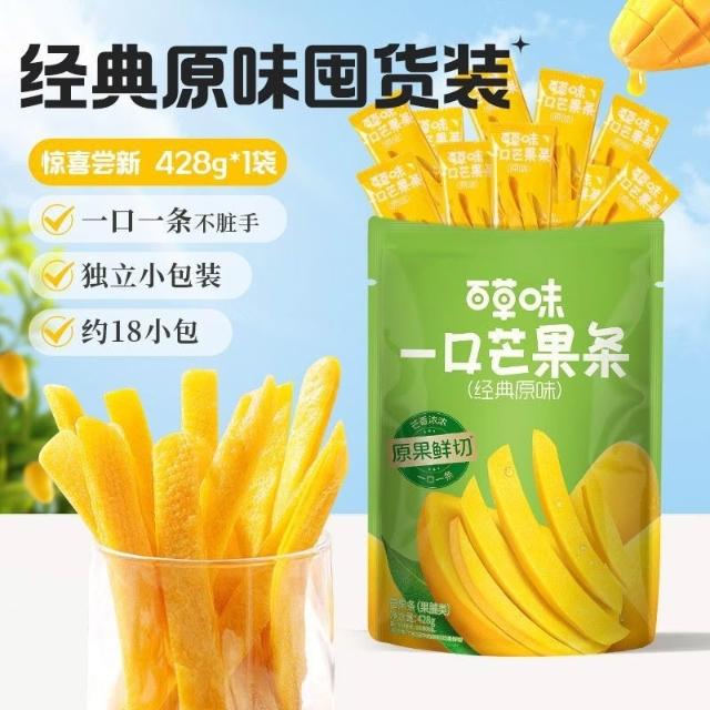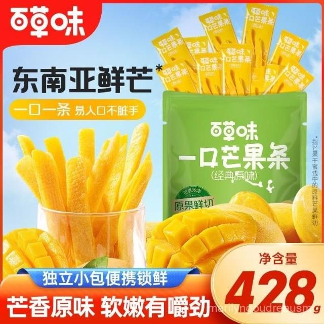 文文甄選 百草味一口芒果條428g大袋芒果幹果脯水果幹蜜餞解饞零食獨立小包