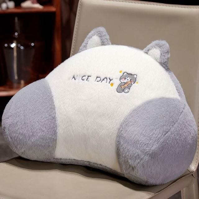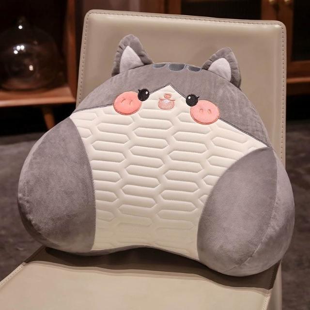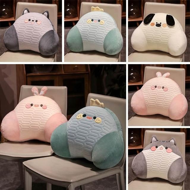 乳膠冰絲腰靠可拆洗可愛卡通夏季辦公室護腰臥室沙發孕婦牀上靠墊