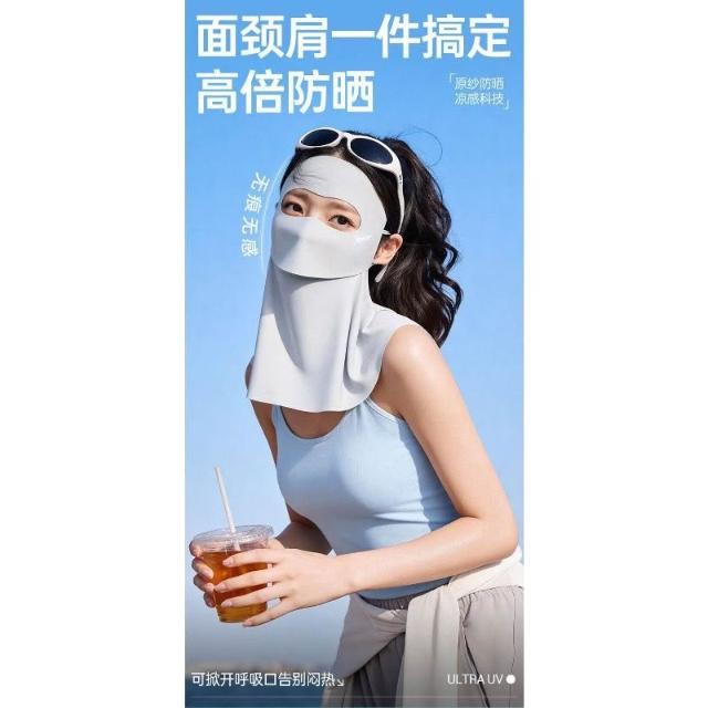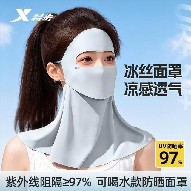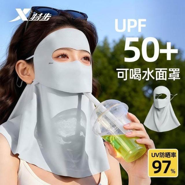 東東特步防曬面罩高顏值臉基尼夏戶外騎行可喝水護頸一體冰絲透氣口罩