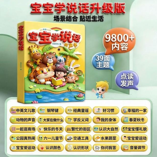 東東寶寶學說話有聲書0-3歲語言啓蒙兒童點讀發聲書撕不爛早教玩具書1