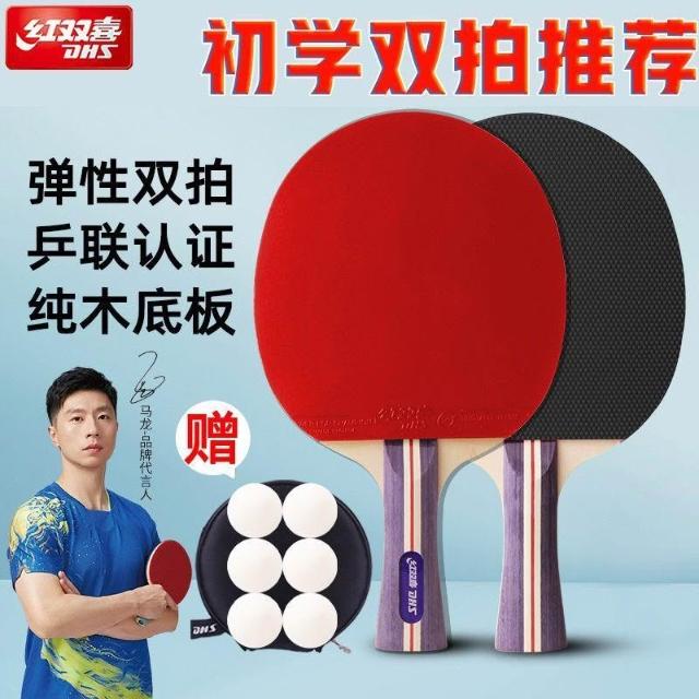 東東【紅雙喜】乒乓球拍雙拍2只正品成人小學生兒童初學者乒乓球拍一套