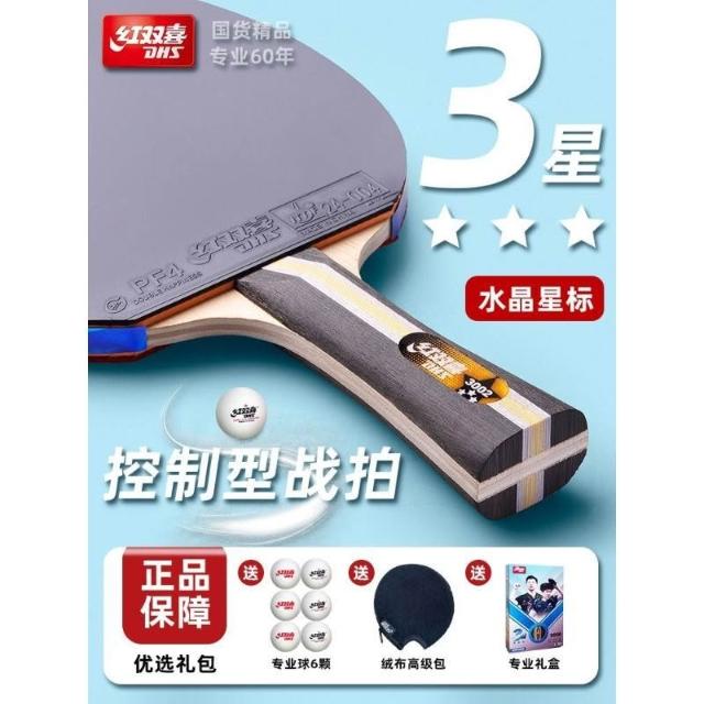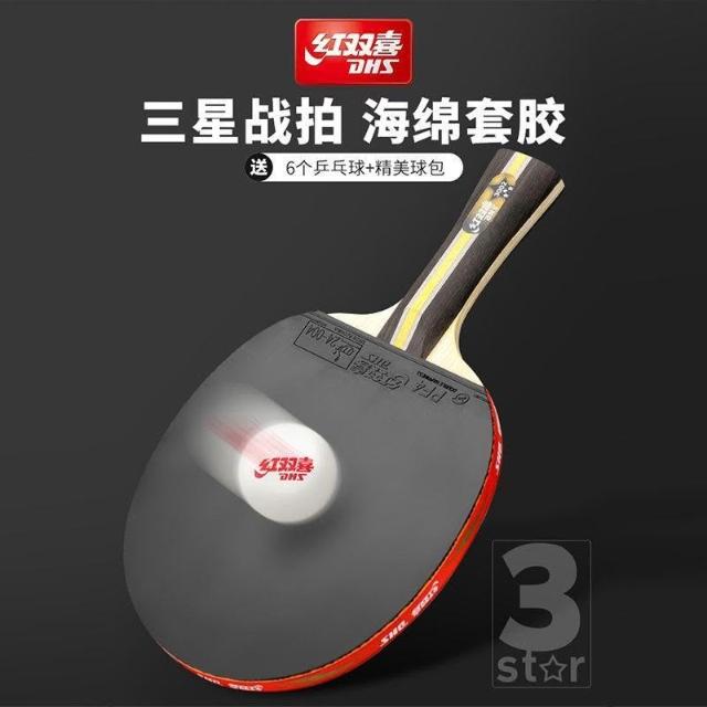 送贈品正版紅雙喜乒乓拍初學入門3星4星雙拍成人進階星級兒童乒乓球拍