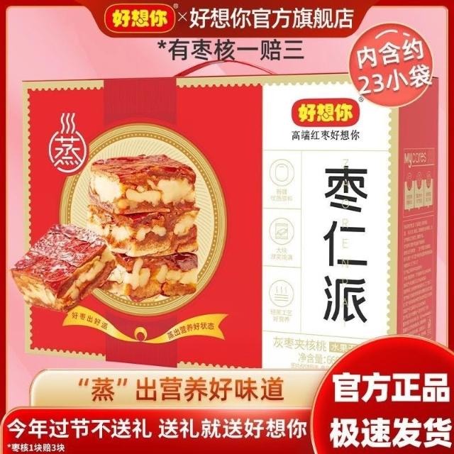 棗仁派 好想你灰棗棗仁派禮盒660g紅棗夾核桃零食軟糯夾心紅小派送人禮盒