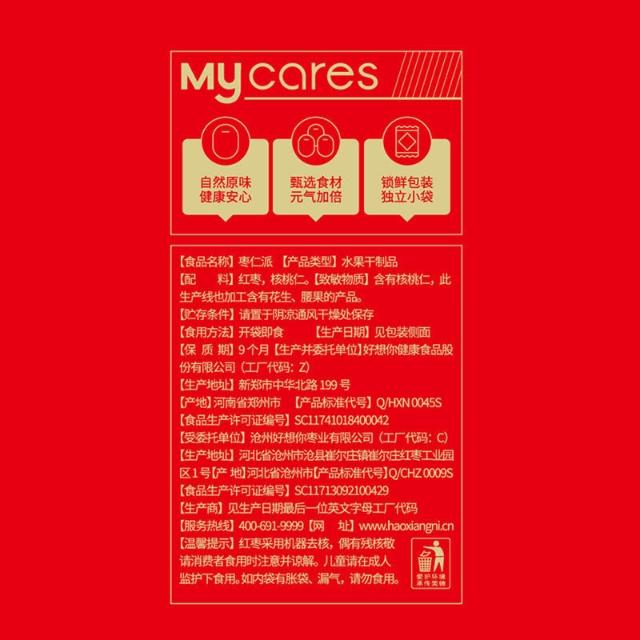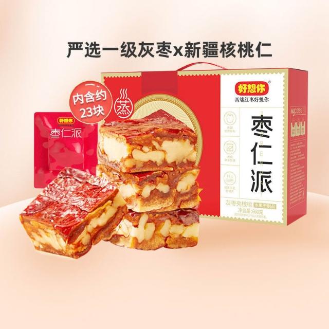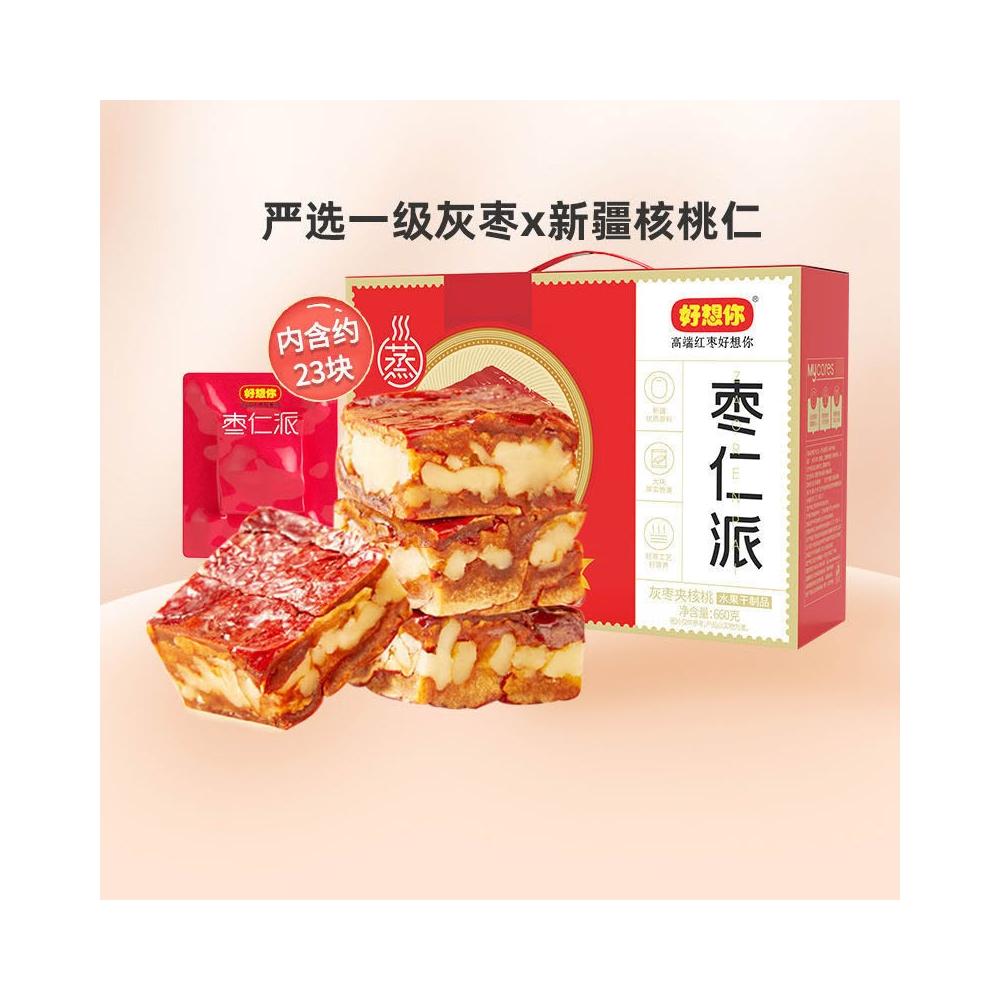 棗仁派 好想你灰棗棗仁派禮盒660g紅棗夾核桃零食軟糯夾心紅小派送人禮盒