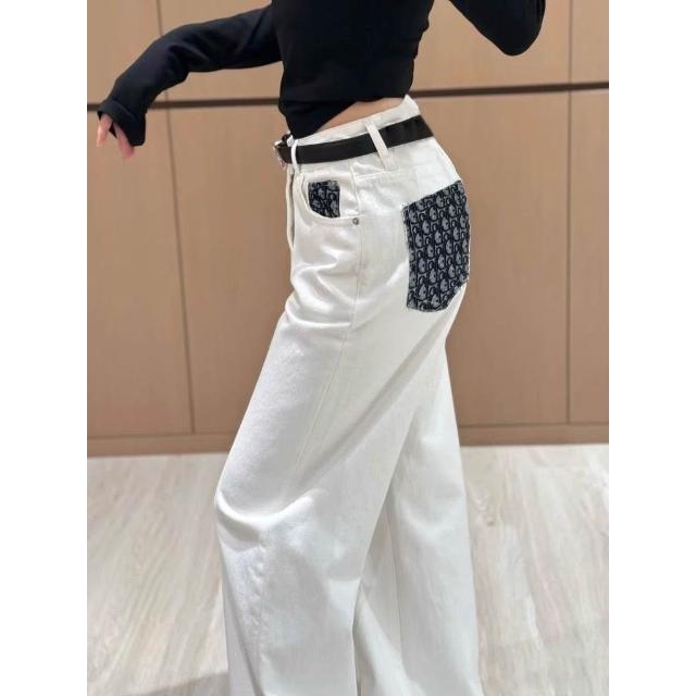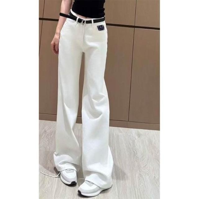 彬彬甄選爆款時髦白色設計口袋牛仔褲女2026春秋新款高腰寬鬆顯瘦直筒長褲