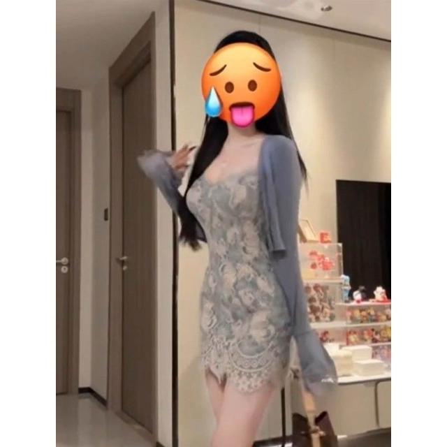 茂源優選純欲風套裝女2025秋季氣質長袖針織開衫外套蕾絲吊帶連衣裙兩件套