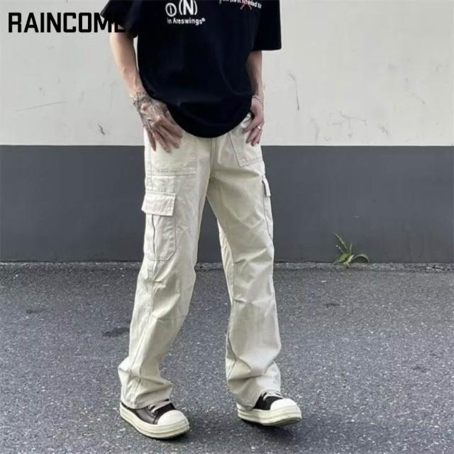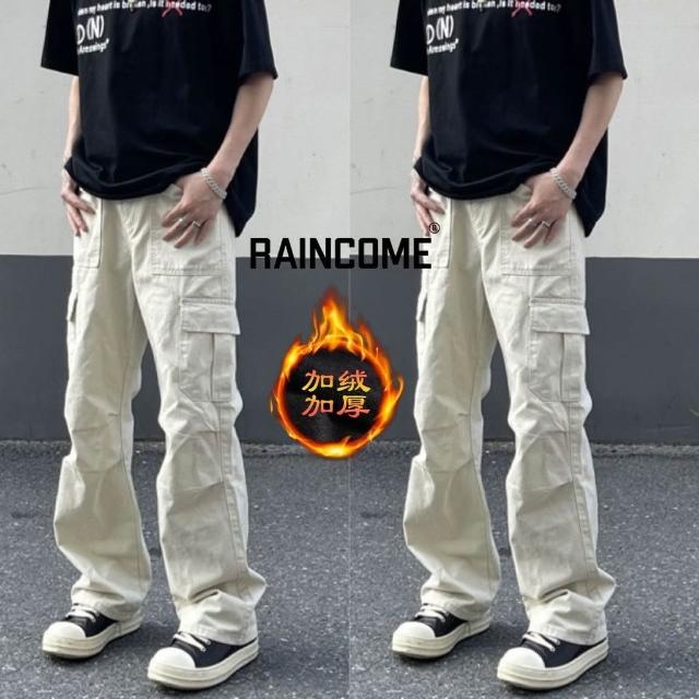 彬彬甄選RAINCOME米白色工裝褲傘兵機能休閒褲垂感口袋美式闊腿直筒長褲子