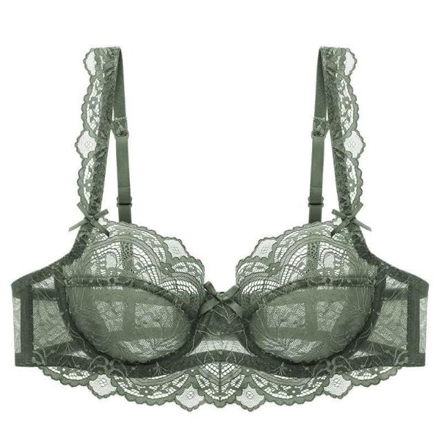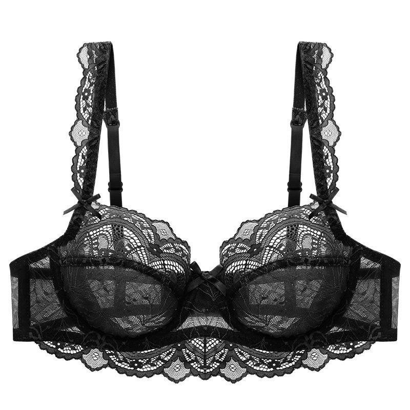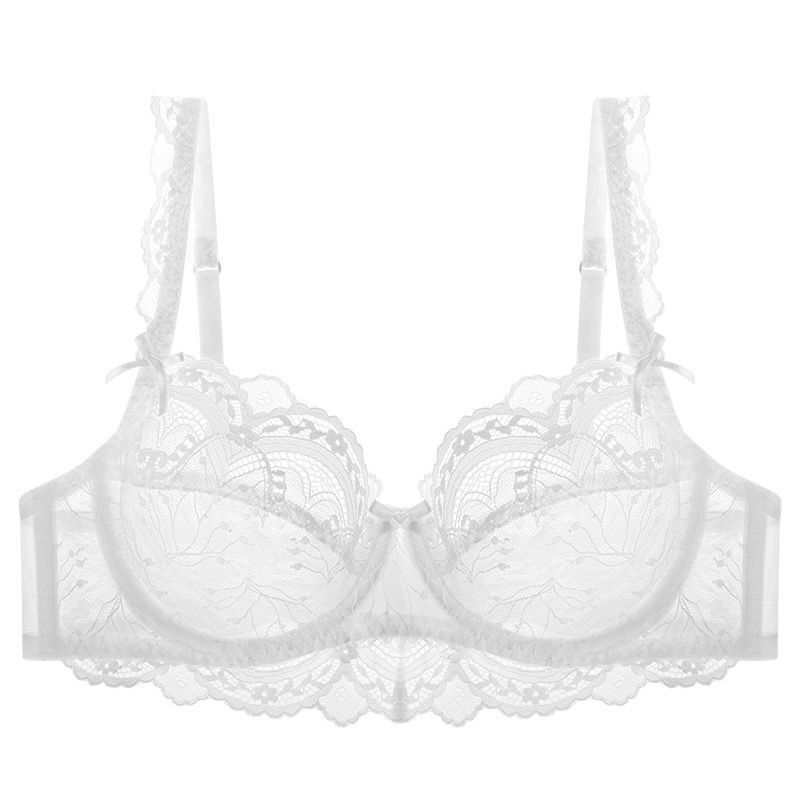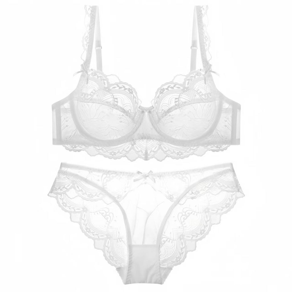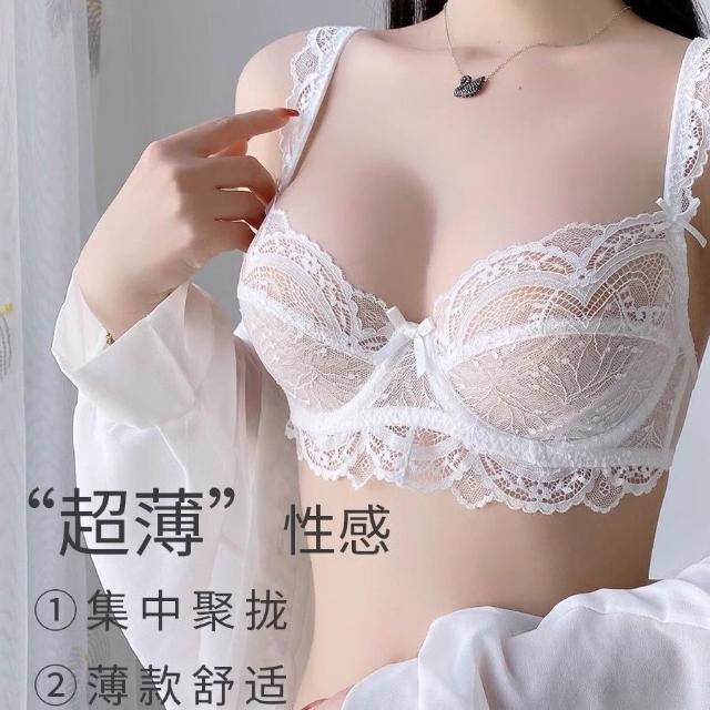 聰明甄選誘惑性感超薄蕾絲文胸套裝舒適小仙女白色時尚胸罩大碼顯小內衣