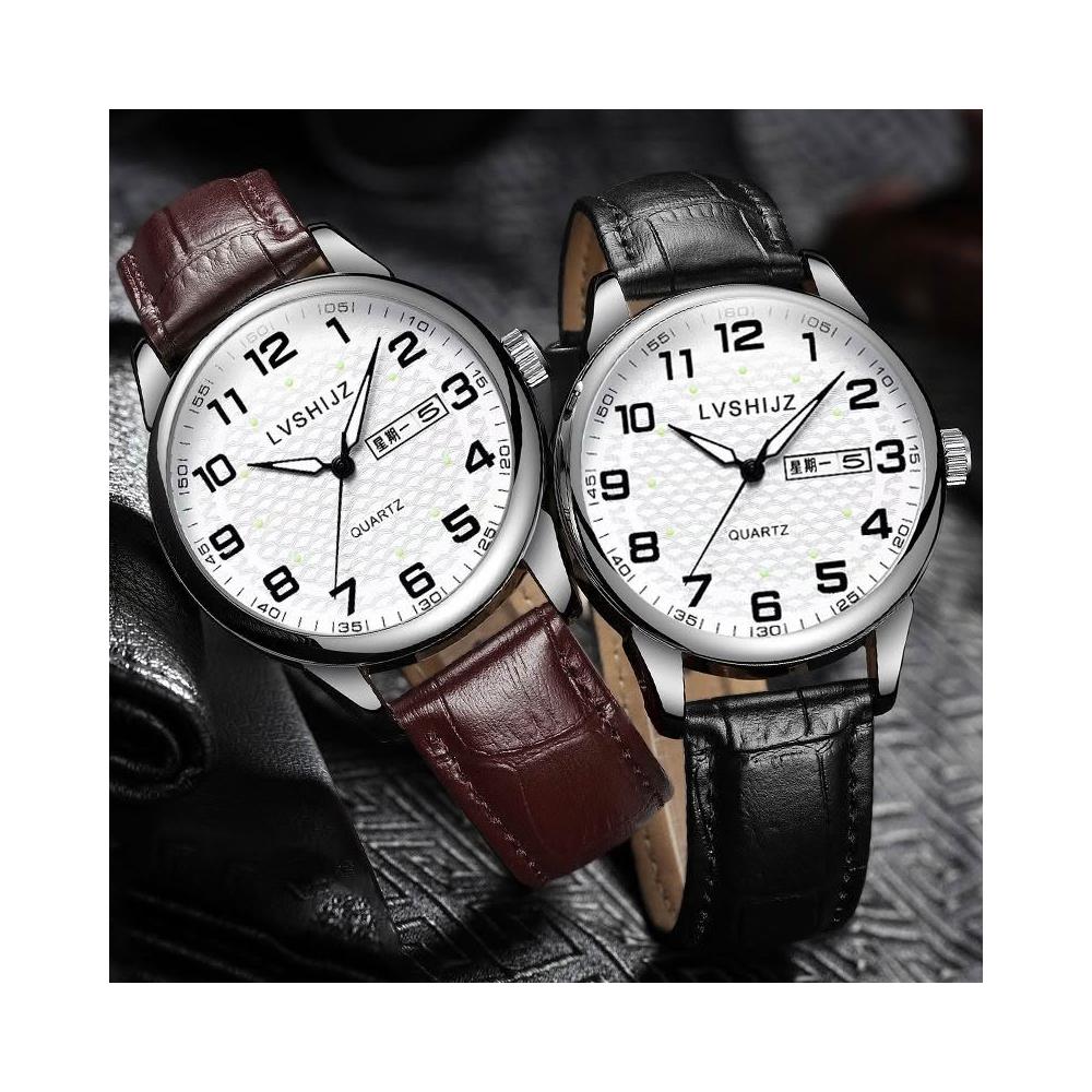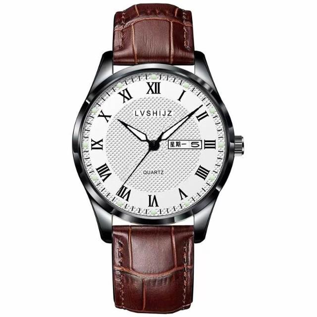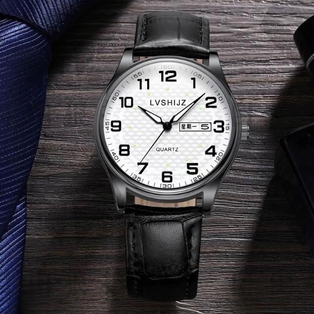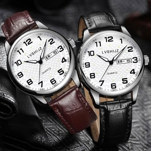 聰明甄選簡約夜光大數字經典百搭指針大表盤防水石英男表送男友考試老人表