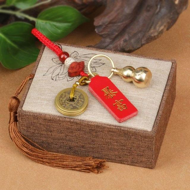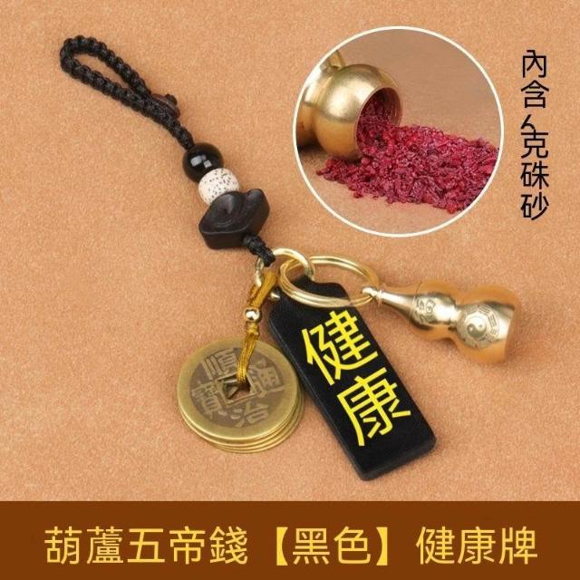 優先購硃砂真皮平安牌鑰匙扣汽車掛件黃銅葫蘆貔貅五帝錢編織繩掛鏈飾品