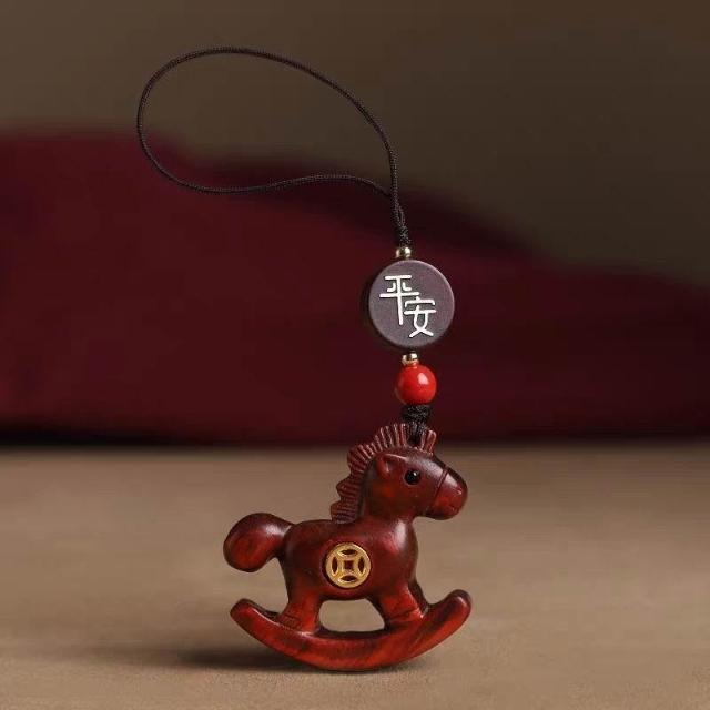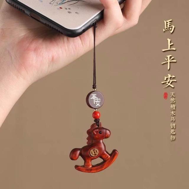 優先購檀木生肖馬汽車鑰匙扣2026馬年本命年飾品手機鏈掛件平安掛飾送禮