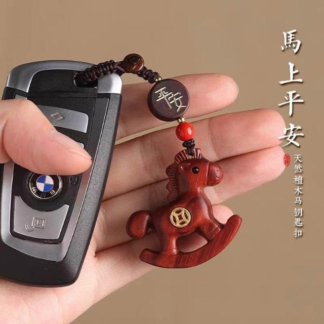 優先購檀木生肖馬汽車鑰匙扣2026馬年本命年飾品手機鏈掛件平安掛飾送禮