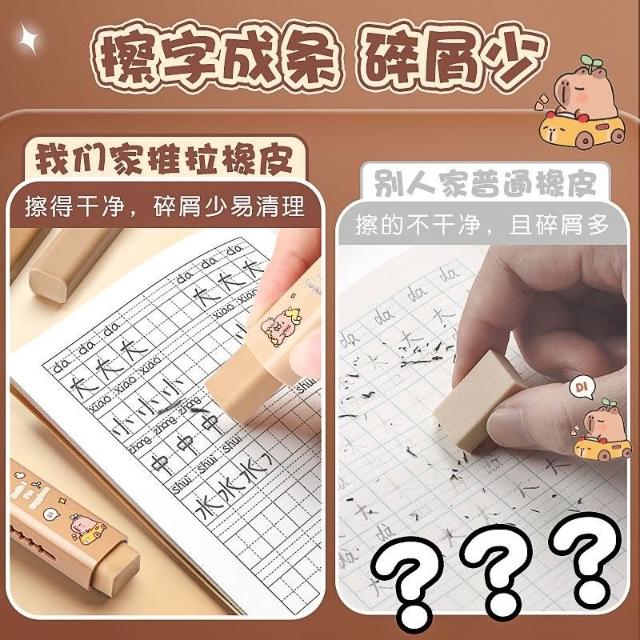 聰明甄選卡皮巴拉橡皮推拉橡皮擦小學生專用無屑超乾淨創意卡通可愛橡皮擦