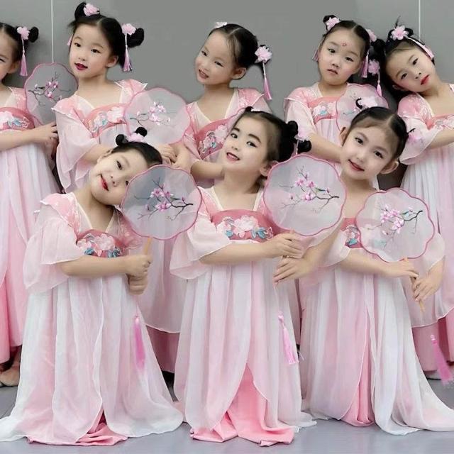優先購兒童漢服胭脂妝古典舞蹈服桃花笑春三月小道童表演服有位姑娘襦裙