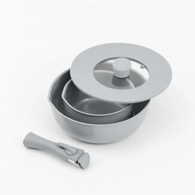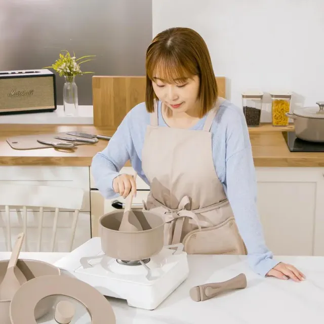 Kakaii 卡宜家居好好炒陶瓷鍋具四件組(含26cm炒鍋、18cm湯鍋、矽膠共用鍋蓋、可拆式把手)