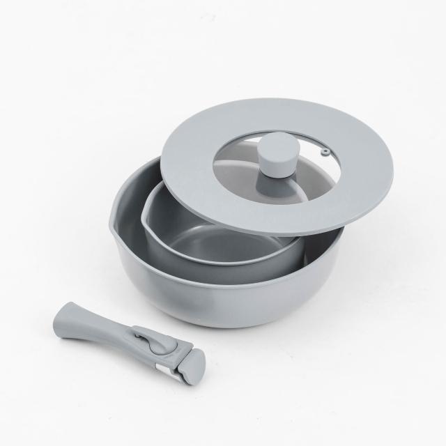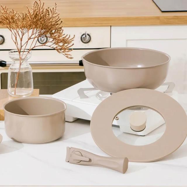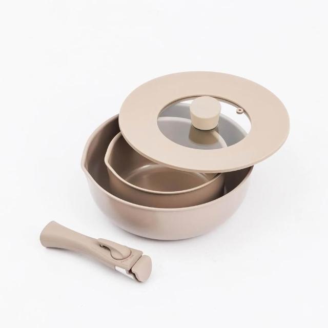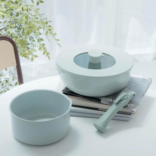 Kakaii 卡宜家居好好炒陶瓷鍋具四件組(含26cm炒鍋、18cm湯鍋、矽膠共用鍋蓋、可拆式把手)/餐廚用品/廚具/家居生活