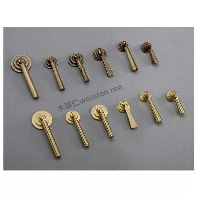 [ 木頭仁 ] 新中式純黃銅衣櫃門拉手復古窗戶古銅色吊墜櫃子單孔抽屜銅把手