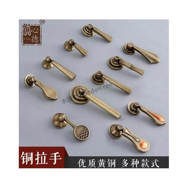 [ 木頭仁 ] 新中式純黃銅衣櫃門拉手復古窗戶古銅色吊墜櫃子單孔抽屜銅把手