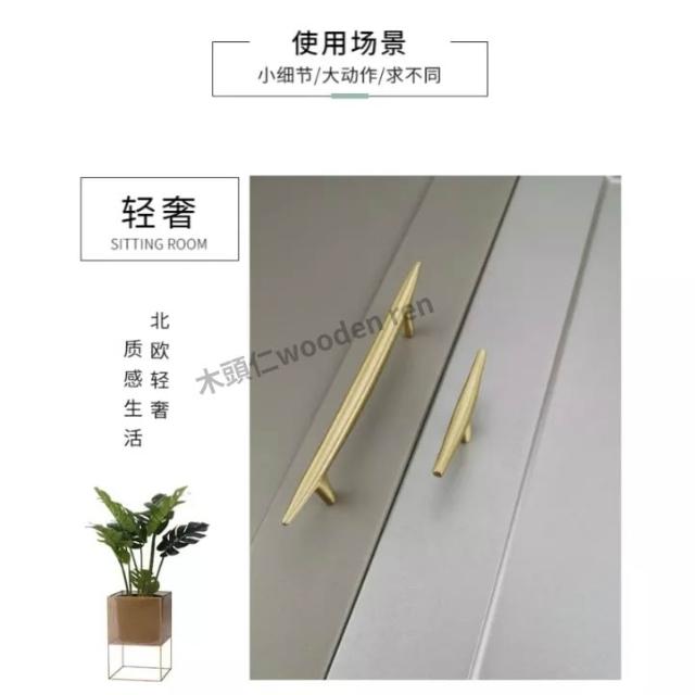 [ 木頭仁 ] 黃銅牛角拉手 美式簡約拉手 純銅實心 歐式櫃子 抽屜金色 北歐輕奢 黃銅衣櫥 櫃門把手