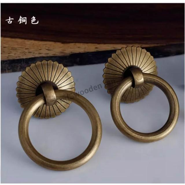[ 木頭仁 ] 純銅 中式拉環把手 仿古家具 茶葉罐拉環 櫃門純黃銅拉手 抽屜單孔小圓環 中藥櫃把手
