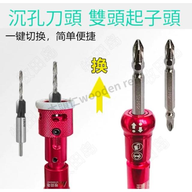 [木頭仁] 精品沉孔鑽 木工限位器 雙向快拆沉孔鑽頭 螺絲家具安裝可調式錐孔鑽