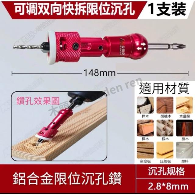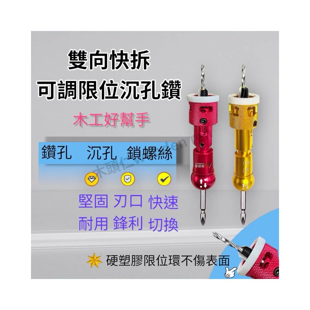 [木頭仁] 精品沉孔鑽 木工限位器 雙向快拆沉孔鑽頭 螺絲家具安裝可調式錐孔鑽