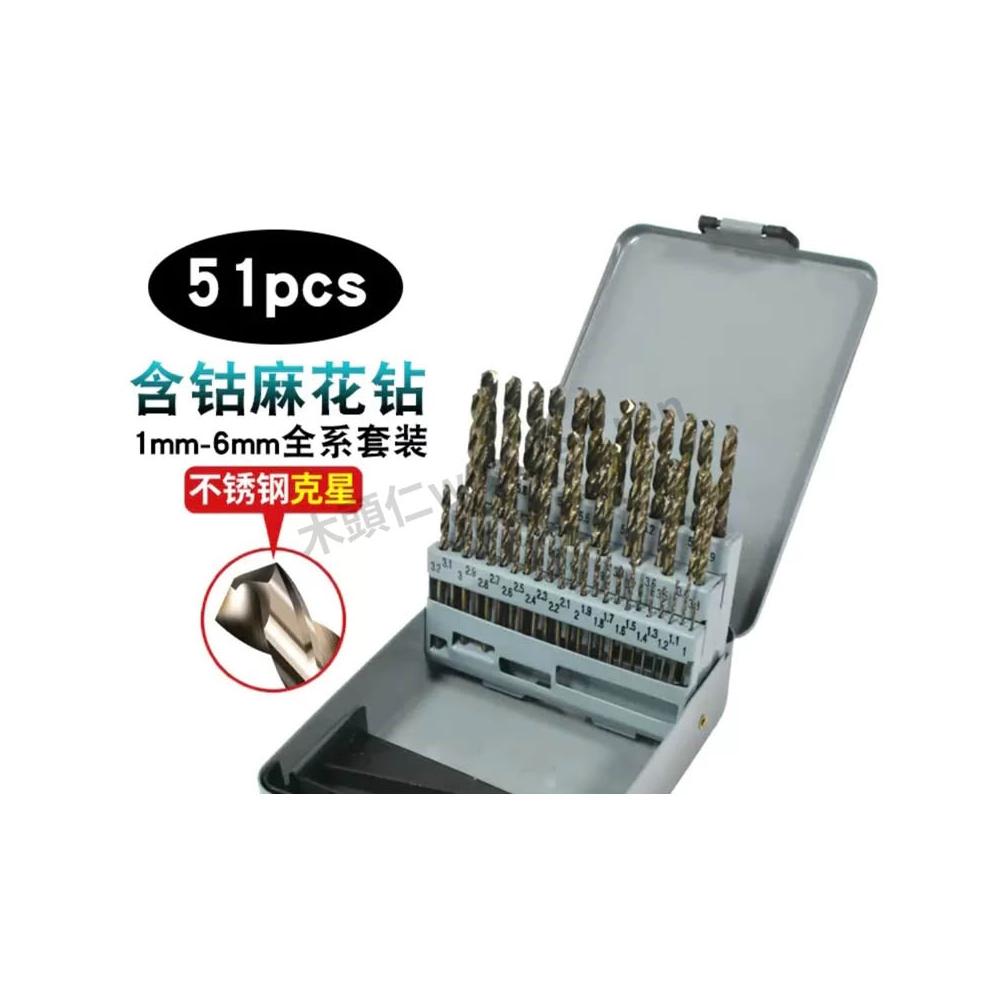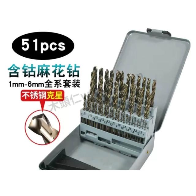 [木頭仁] 51組含鈷麻花鑽 不鏽鋼剋星 手電鑽 打孔鑽頭套裝 高速鋼 直柄麻花鑽頭