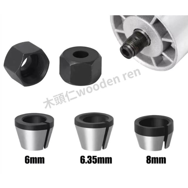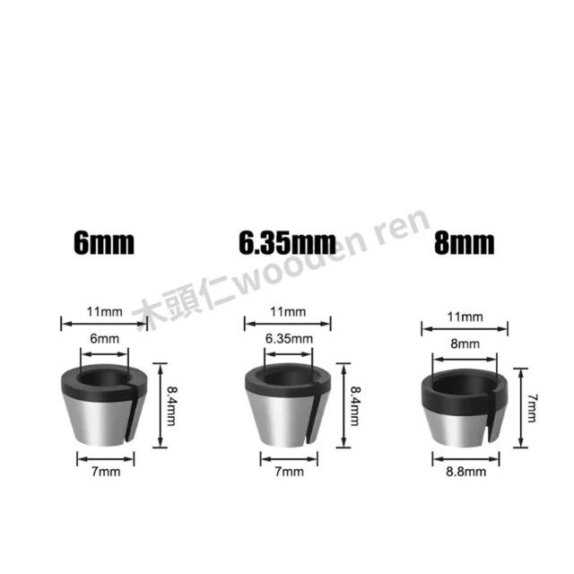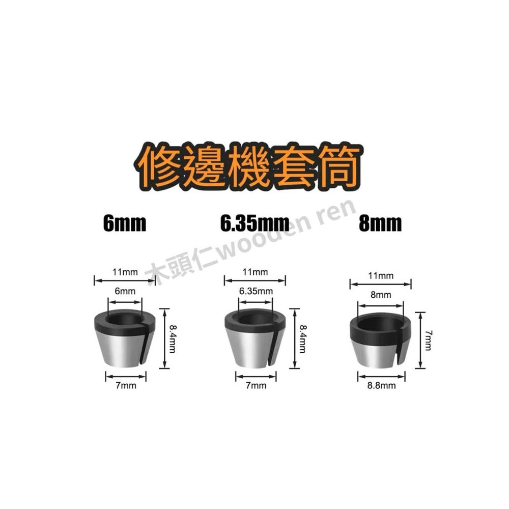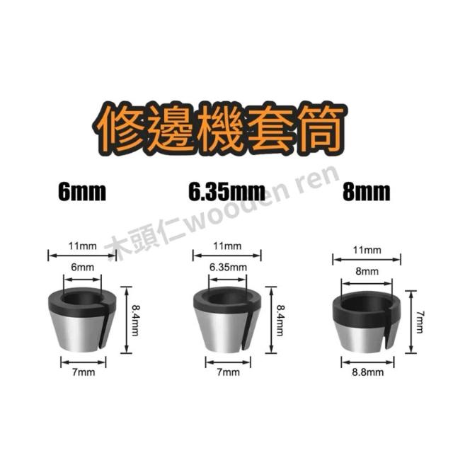 [木頭仁] 6mm 6.35mm 8mm修邊機套筒 螺帽夾頭 磨機轉換套 銑刀轉換頭 配件夾套