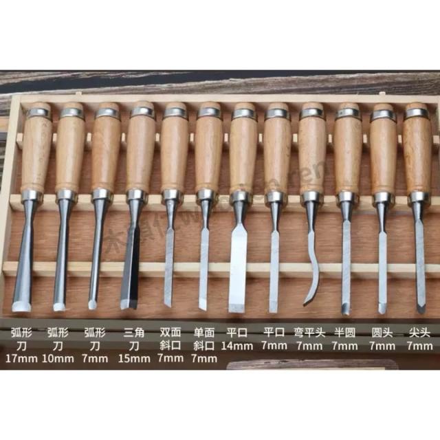 [木頭仁]木雕工具12件組雕花鑿 雕刻刀 家具木工根雕組套 木工鑿
