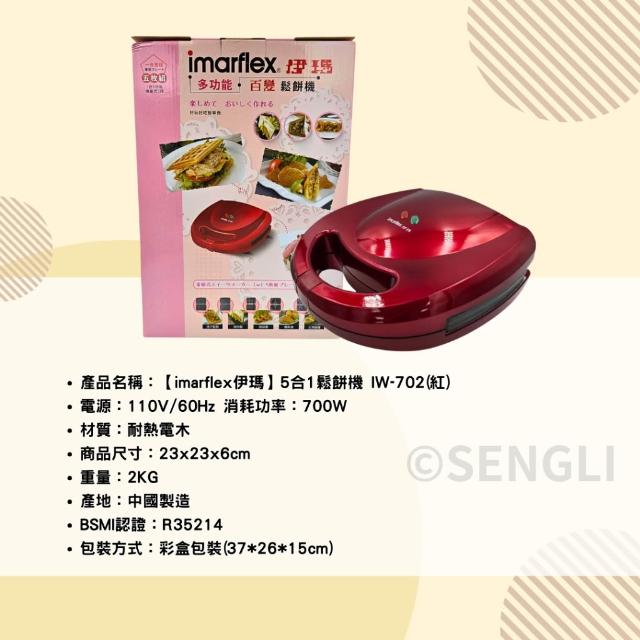 IMARFLEX 伊瑪五合一鬆餅機 附贈5款烤盤 IW-702 (可換烤盤 熱壓三明治機 格子鬆餅)