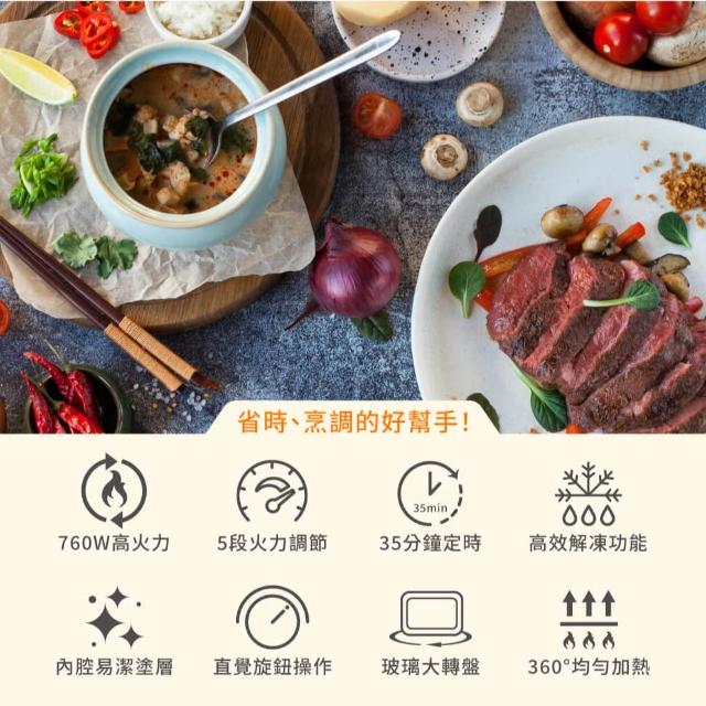 HERAN 禾聯20L 轉盤式微波爐 HMO-20MD01T ( 5段火力 解凍 低輻射 定時)