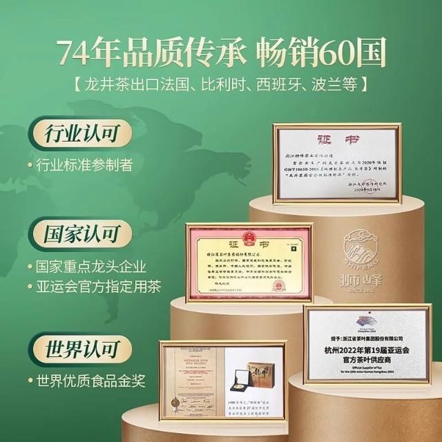 HanNaMiChan獅峰牌龍井茶明前一級綠茶茶葉錢塘産區紙包裝150g 2024新茶
