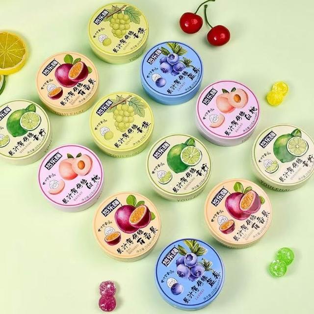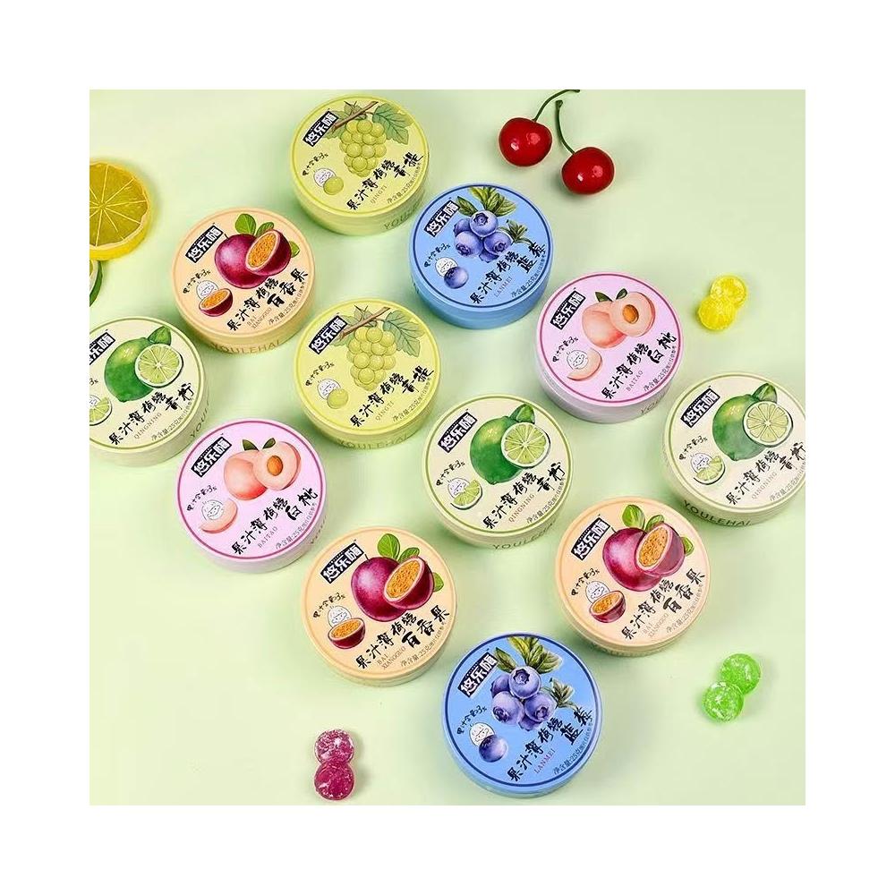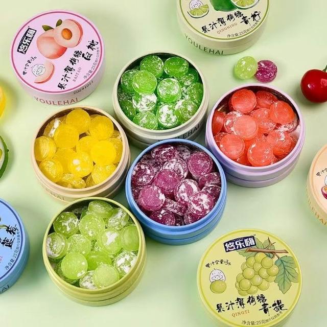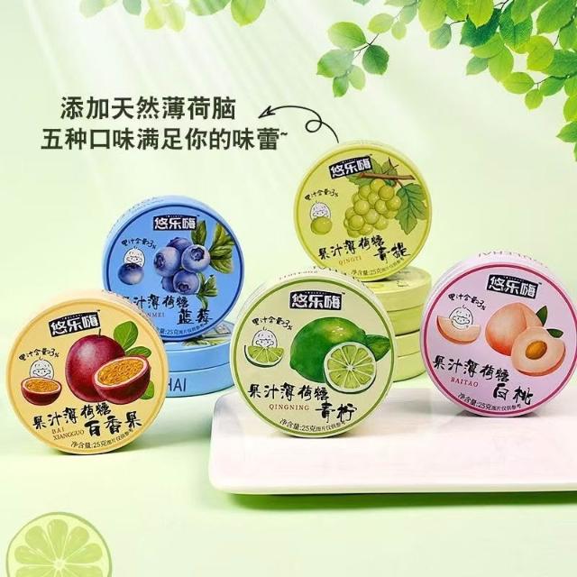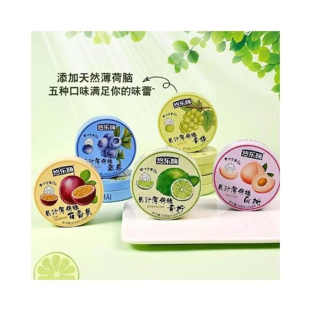 HanNaMiChan悠樂嗨薄荷糖25g多種口味水果硬糖青檸味百香果白桃味青提藍莓口味糖果潤喉清涼清新口氣鐵罐糖果