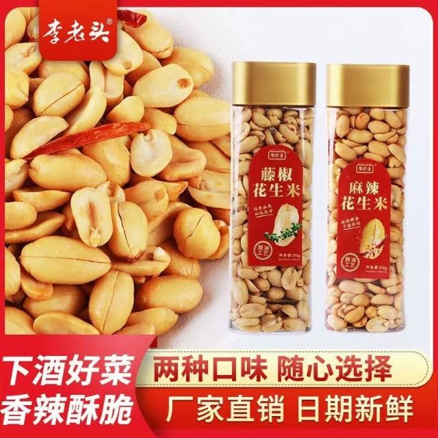 HanNaMiChan李老頭無殼花生米藤椒花生米麻辣花生米脫油花生米即食零食休閒零食370g灌裝