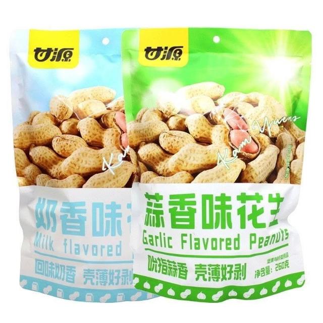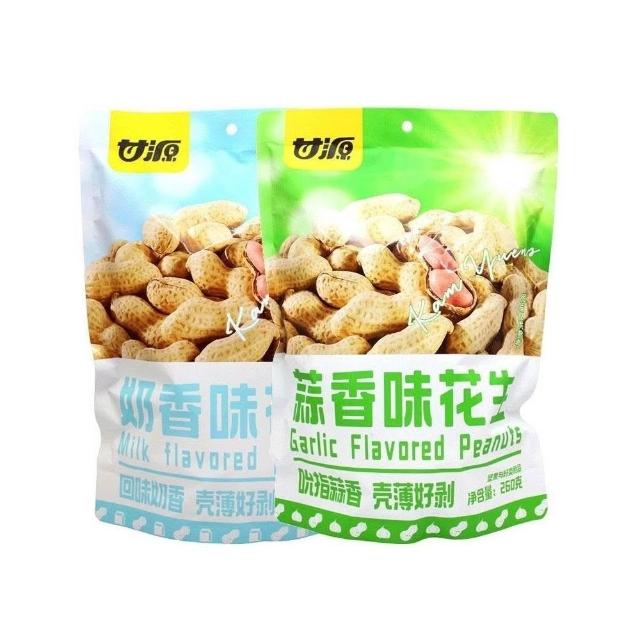 HanNaMiChan 甘源奶香味花生260g袋裝蒜香味帶殻花生米獨立包裝下酒菜花生米炒貨