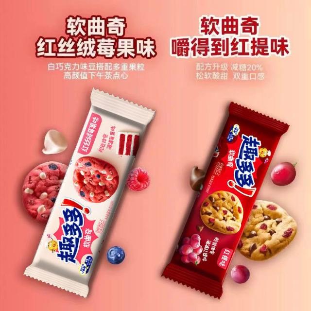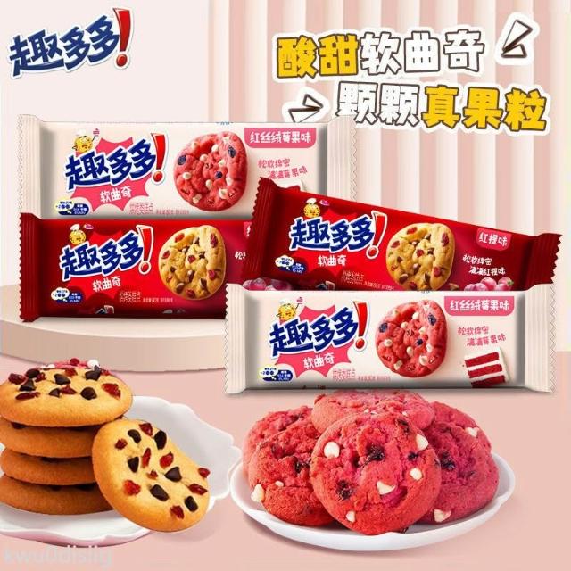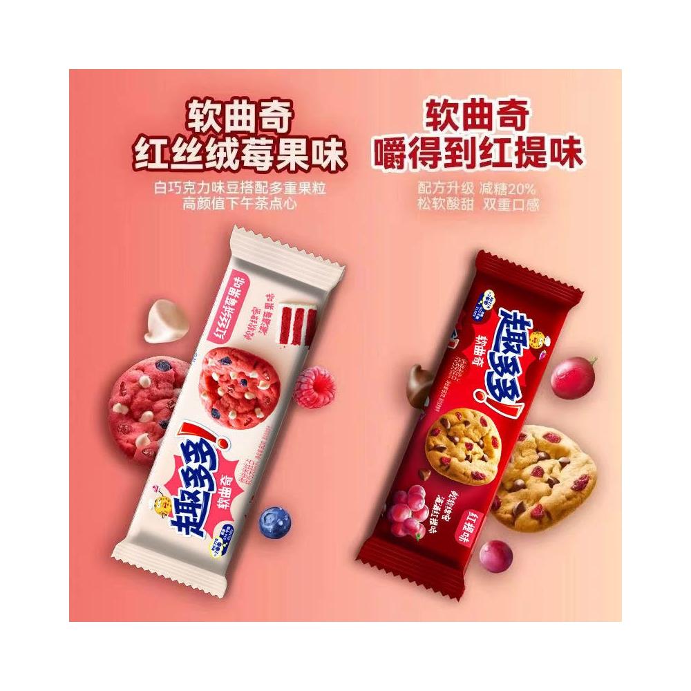 HanNaMiChan曲奇 趣多多軟式曲奇餅乾80g袋裝紅提味莓果味休閒零食早餐下午茶