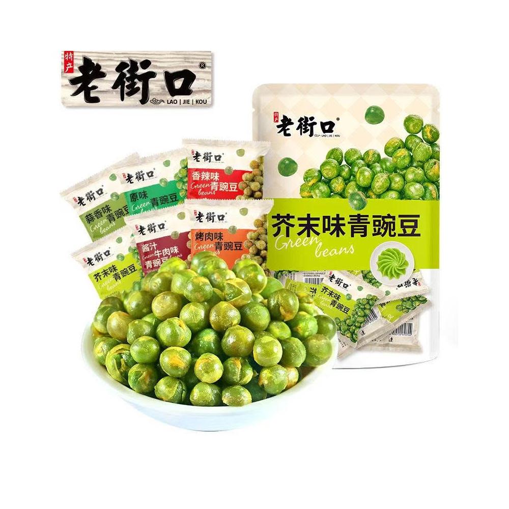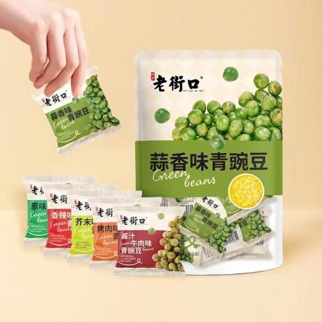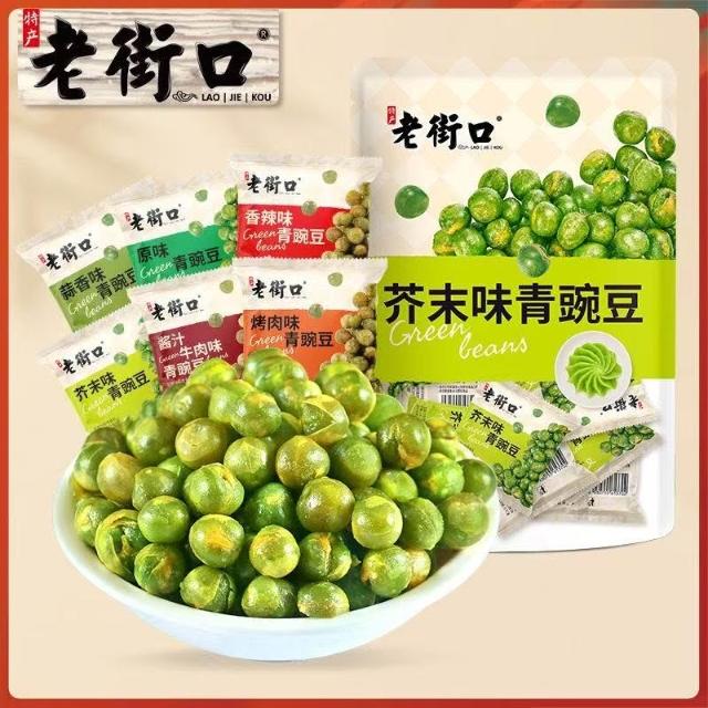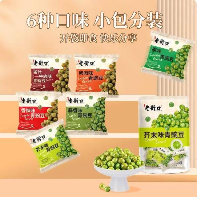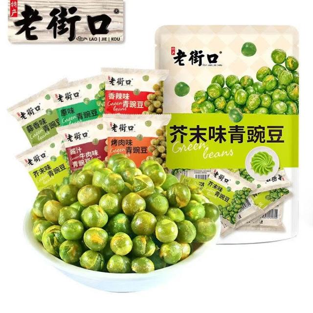 HanNaMiChan老街口蒜香/芥末/原味青豌豆500g袋裝青豆獨立小包裝休閒零食