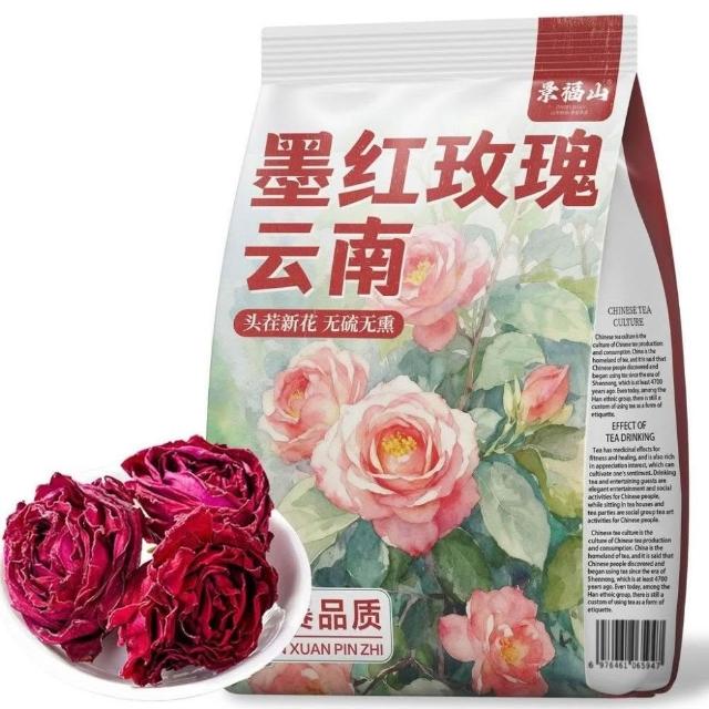 HanNaMiChan墨紅玫瑰無硫薰雲南玫瑰花茶泡水喝一朵一杯代用茶年貨袋裝