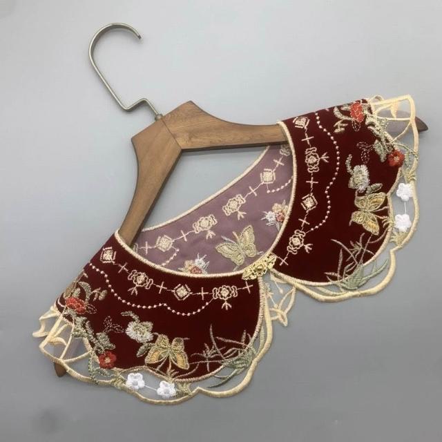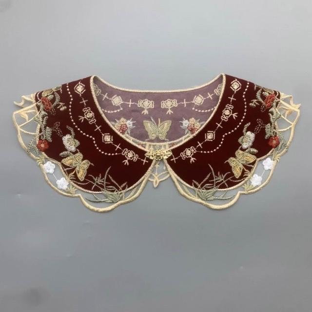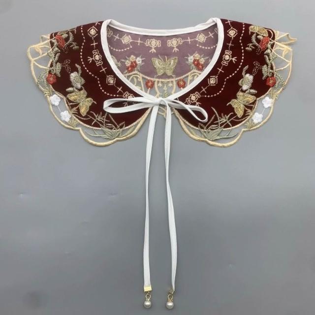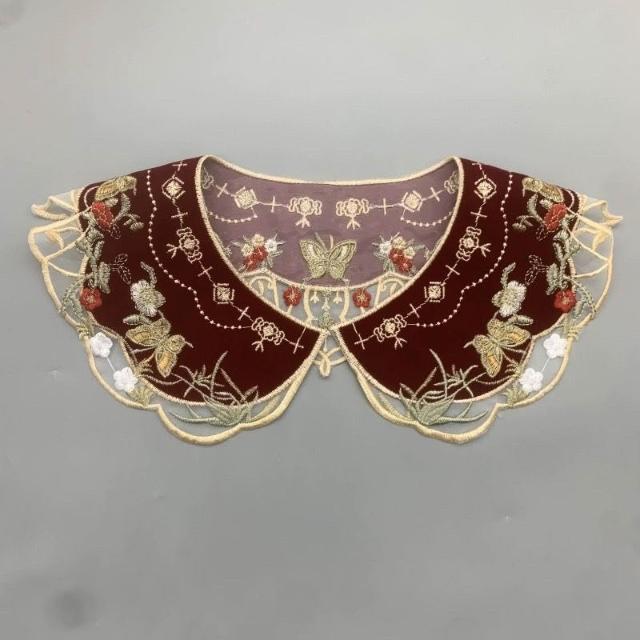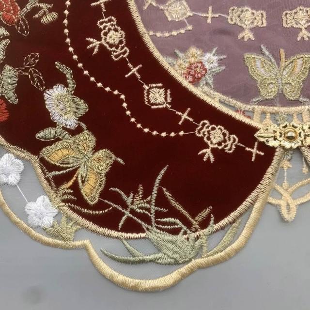HanNaMiChan雲肩國風雲肩紅色刺繡精美流蘇坎肩繡斗篷花假領