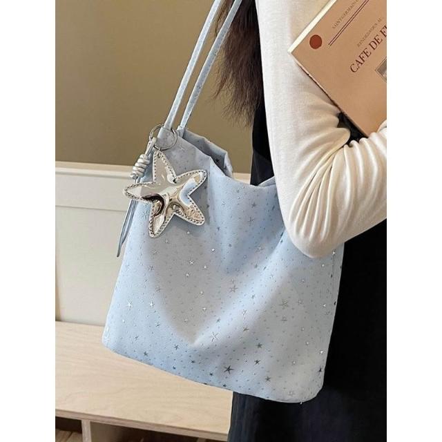 優選精品ins星星慵懶通勤包包2026新款單肩韓系托特包女網紅百搭手提包女