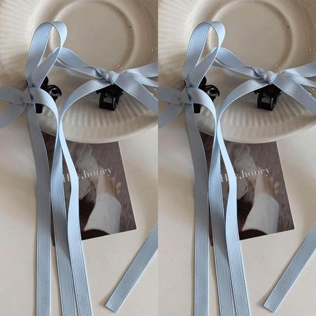 優選精品溫柔且少女雙層~芭蕾風蝴蝶結長款飄帶小抓夾雙丸子頭髮夾頭飾新