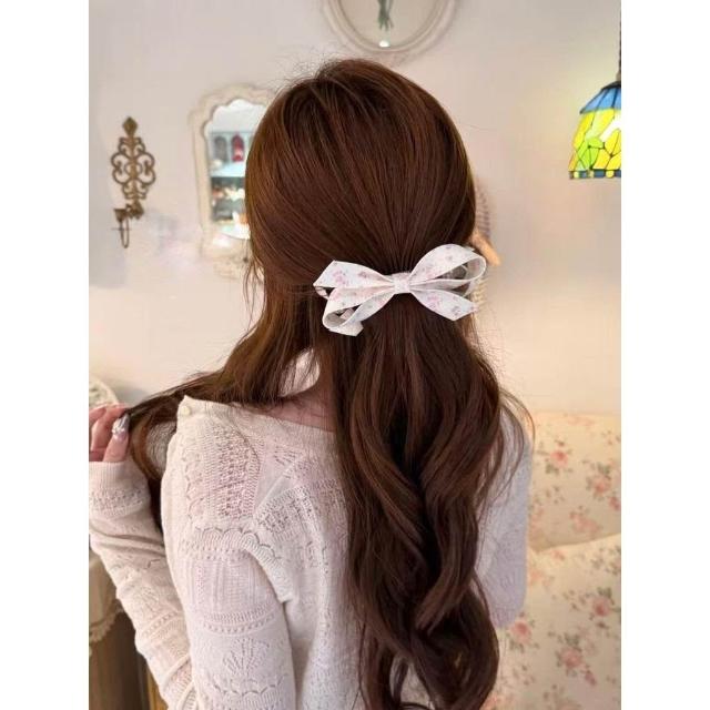 優選精品手工粉色碎花蝴蝶結香蕉夾溫柔氛圍感半扎髮夾頭飾
