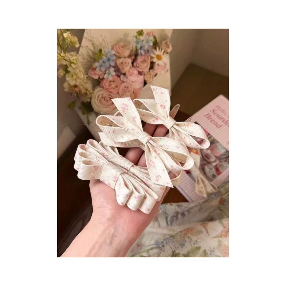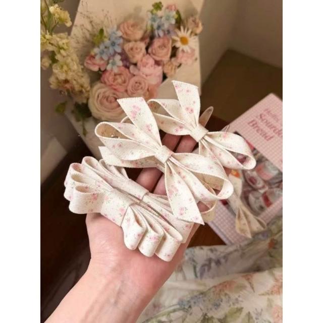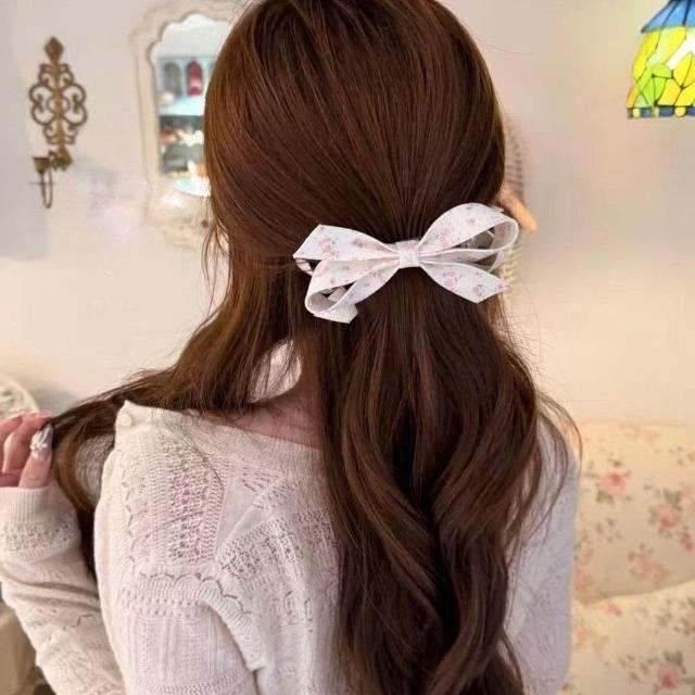 優選精品手工粉色碎花蝴蝶結香蕉夾溫柔氛圍感半扎髮夾頭飾