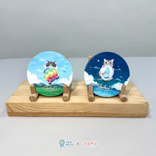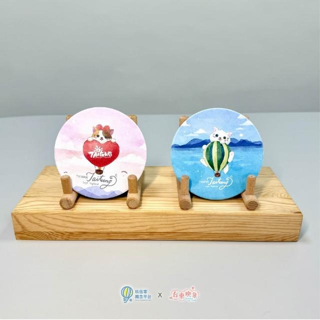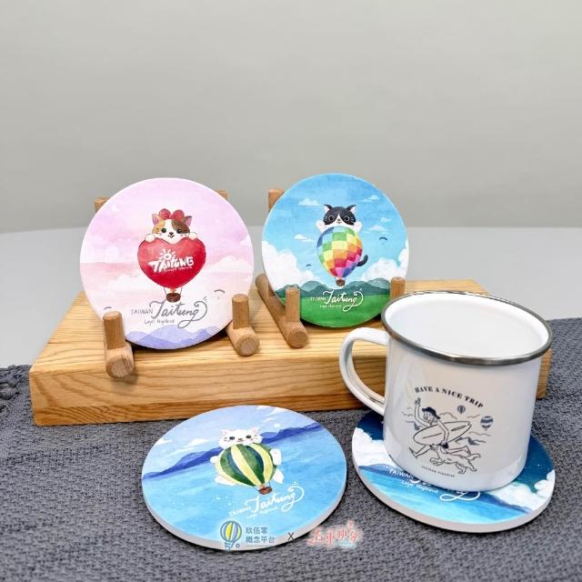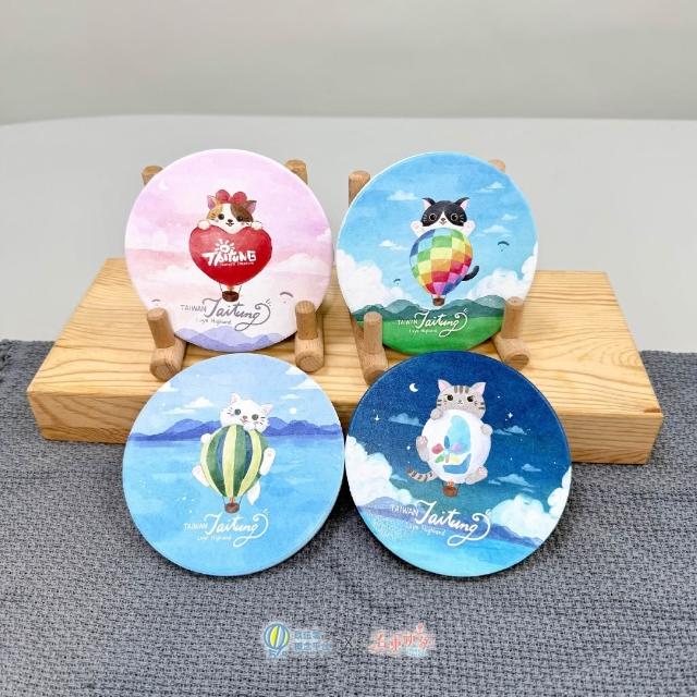950玖伍零概念萌貓熱氣球 陶瓷吸水杯墊 <台東熱氣球嘉年華 圖像授權>
