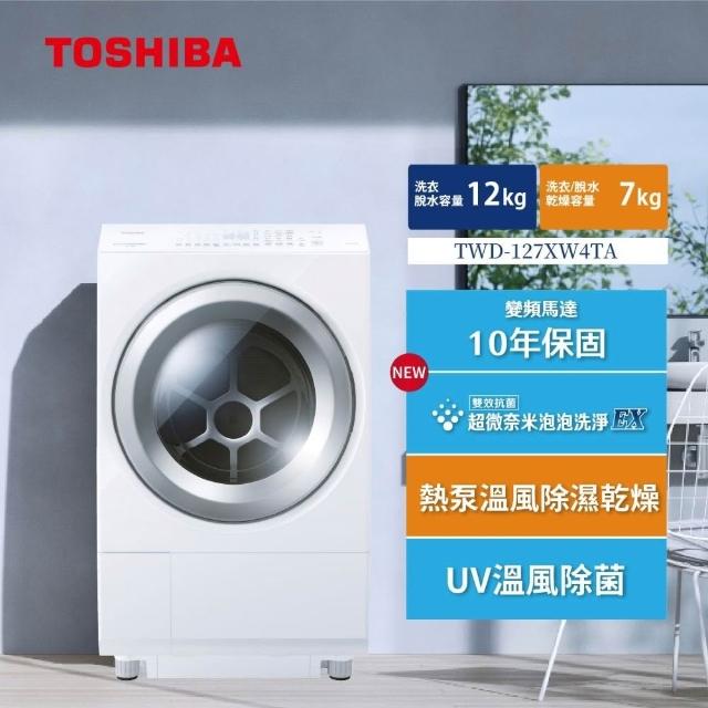 TOSHIBA 東芝TOSHIBA 東芝 12公斤 熱泵UV超微奈米泡溫水自動投劑洗脫烘滾筒洗衣機 TWD-127XW4TA