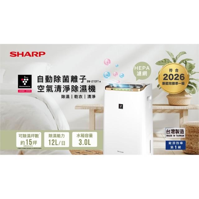 SHARP 夏普SHARP 夏普 12L 節能一級 自動除菌離子2合1空氣清淨除濕機 DW-LT12FT-W