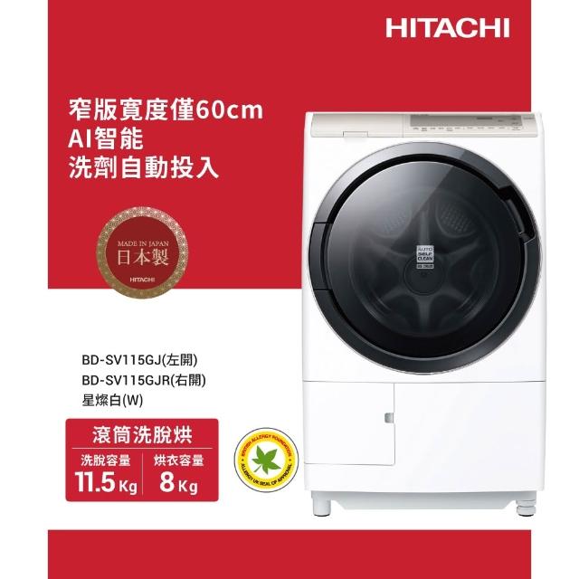 HITACHI 日立HITACHI 日立 11.5KG日本製變頻滾筒洗脫烘洗衣機 左開 BDSV115GJ 右開 BDSV115GJR