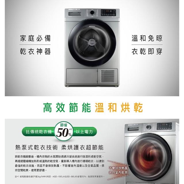 SANLUX 台灣三洋SANLUX 台灣三洋 10公斤熱泵免曬衣機乾衣機 ASD-100UA