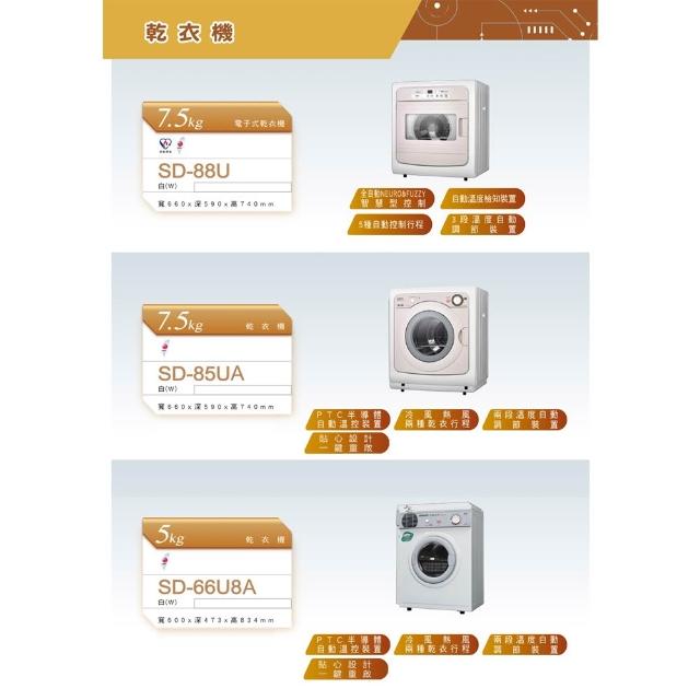 SANLUX 台灣三洋 5KG PTC加熱乾衣機 SD-66U8A