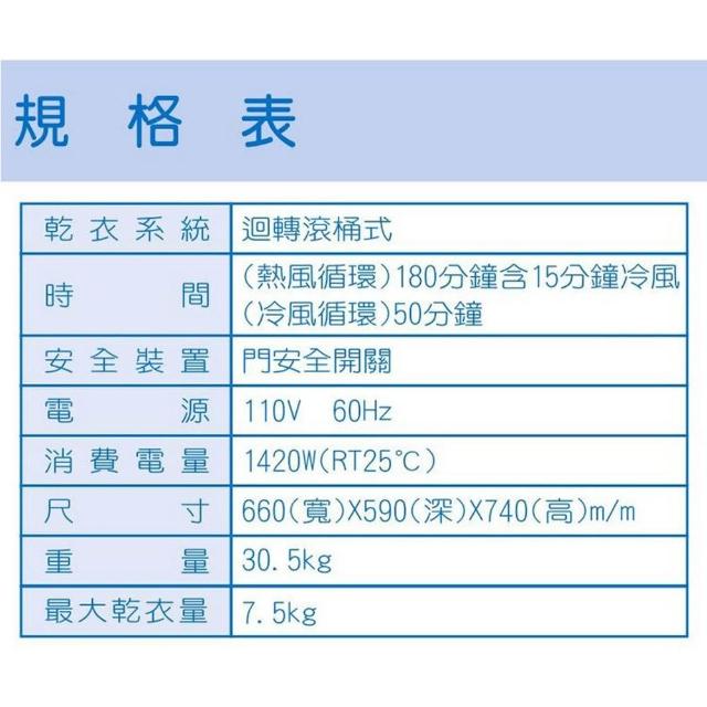 SANLUX 台灣三洋 7.5公斤乾衣機 台灣製 SD-85UA